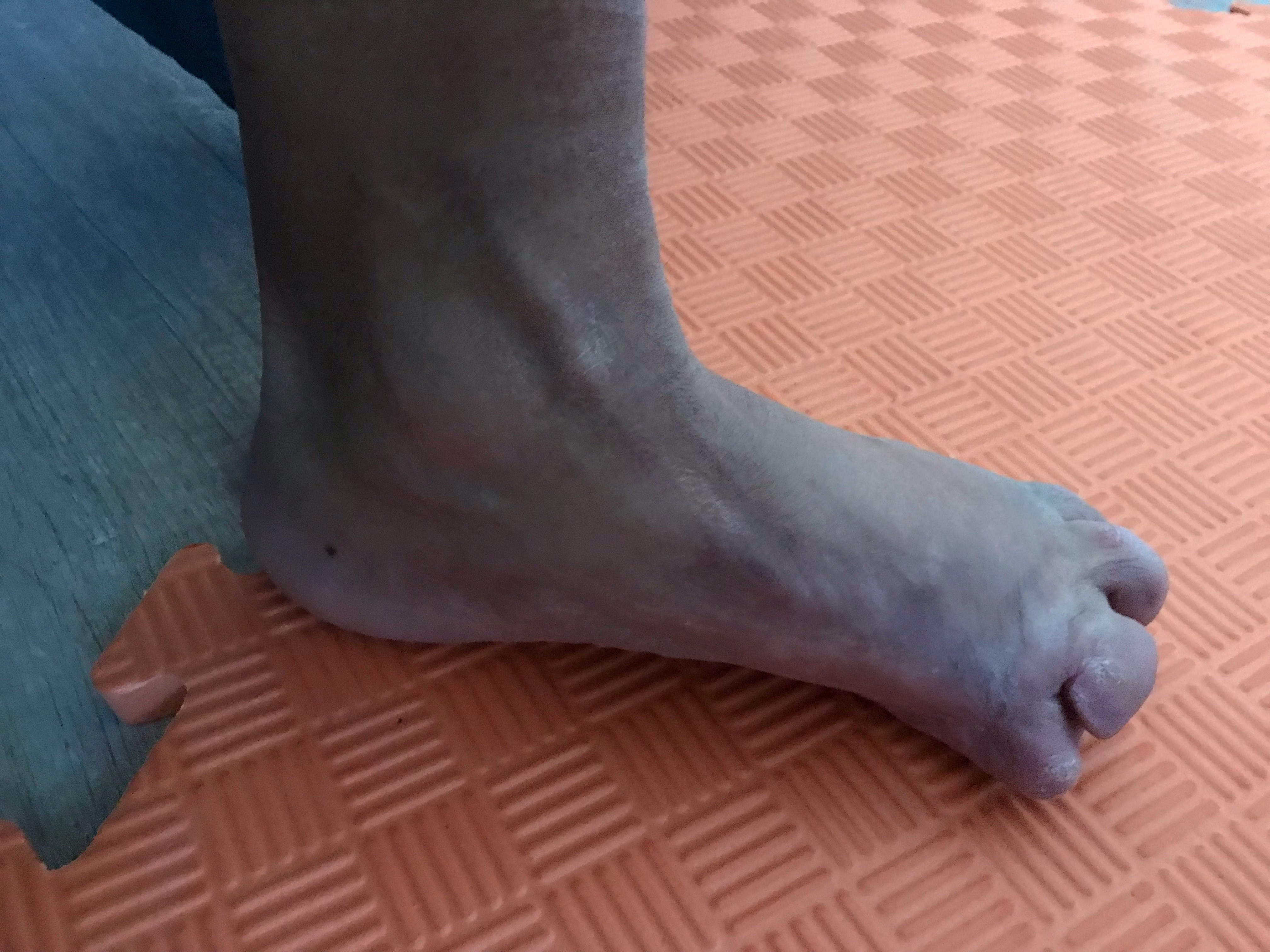 Olgumuz 2 yaşında ayağının yanması sonucunda sol ayağının phalakslarında deformasyon geliÅŸmiÅŸtir. Zaman içerisinde bu deformasyona paralel ayakta baskın kas grubu ayakta diÄŸer kemiklerin dizilimini bozmuÅŸ ve yürüyüÅŸ periyodunu tam anlamıyla tamamlayamadığı için diÄŸer alt ekstremiteye göre atrofik kalmıştır. Olgumuz günlük hayatında kullandığı ayakkabıları çeÅŸitli materyaller ile dolgulayıp günümüze kadar bu yöntemi kullanılmıştır. Bu yöntem sadece ayakkabıdaki kısmi deformasyonu engellemiÅŸtir.