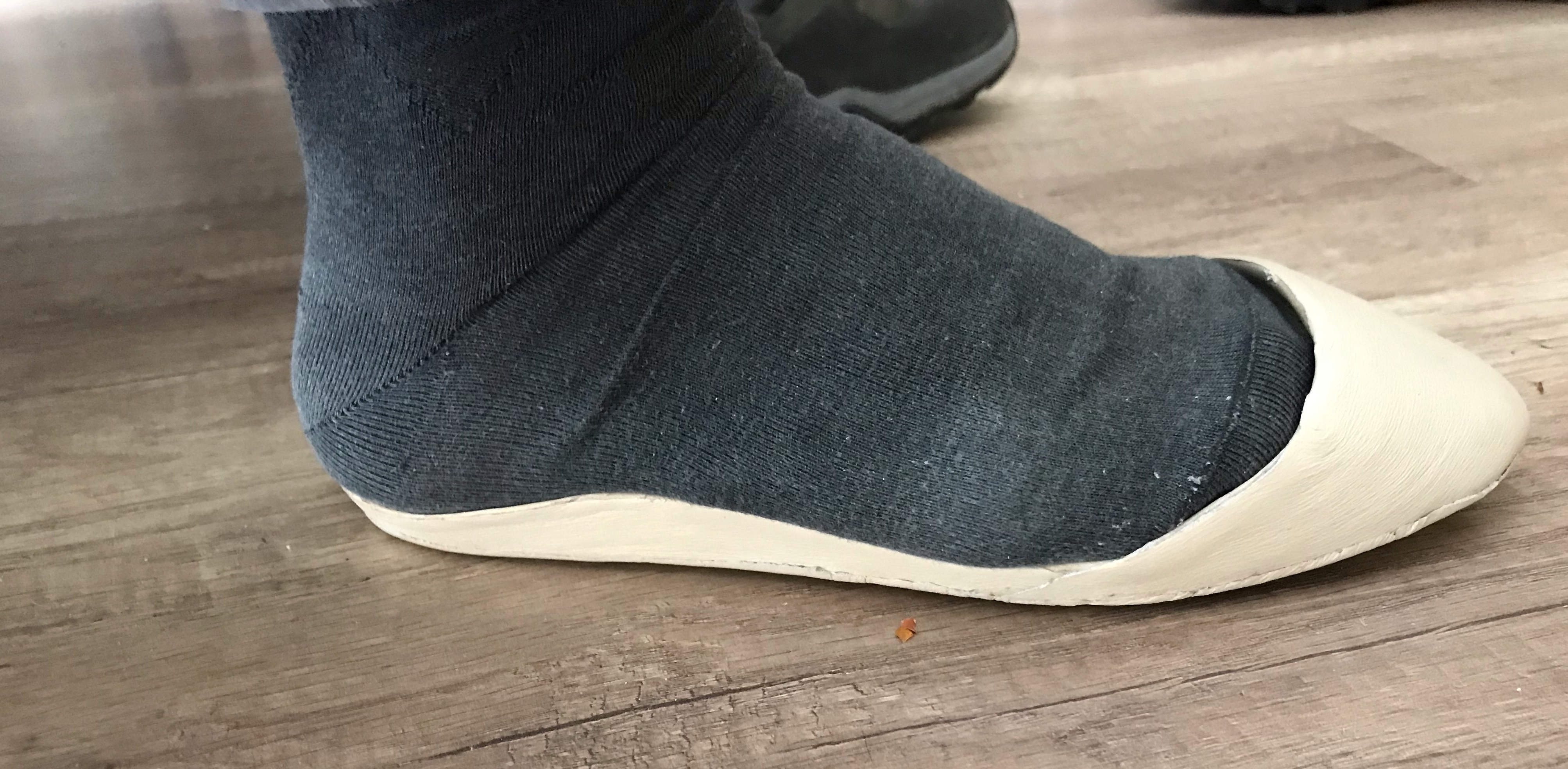 Gerekli inceleme ve analiz sonucunda hastamıza parsiyel ayak dolgulu tabanlık tasarımı yaptık. Hastamız tabanlığını ayakkabılarının içerisine portatif olarak kullanmaktadır. Tabanlık tasarımında kullandığımız malzeme dansitite olarak hibrit kullanılmıştır. Ayrıca yürüyüÅŸ siklusu içerisinde itme fazında etkin olan karbon yay sistemi ile destekleyip hastamızın push off ve toe off periyodundaki zamanlama farklılığını düzenlemiÅŸ olduk. Hafızalı olan bu karbon plaka tabanlığın deformasyonunu engellemekte de etkin görev almaktadır. Olgumuzun yürüyüÅŸ aÅŸamasında stance (basma) fazında yerden aldığı yer reaksiyonel momenti ile vücut ağırlık hattından gelen momentin desteklenmesini saÄŸlamıştır. YürüyüÅŸ aÅŸamasında bu denge hastamızın enerji tasarrufu saÄŸladığı ve daha geç yorulduÄŸu, daha uzun mesafeler yürüyebildiÄŸi ve ayakkabı kullanım yelpazesini geniÅŸlettiÄŸini bize belirtti. Uzun vadede bacak kaslarında atrofik görüntünün azaldığını, özellikle hemstring ve gluteal kas bölgelerinde bu geliÅŸimi daha çok hissettiÄŸini belirtti. Ölçümlemede de bu geliÅŸimi kayıtlarımıza aldık. Gün içerisindeki yorgunluÄŸun, artan yürüme mesafesi ve ayakta durma süresine raÄŸmen azaldığı ve mental olarak kendini daha iyi hissettiÄŸini belirtti. Ayaktaki basınç kontrolsüzlüÄŸünden kaynaklı nasırlarında azalma olduÄŸunu gözlemledik.